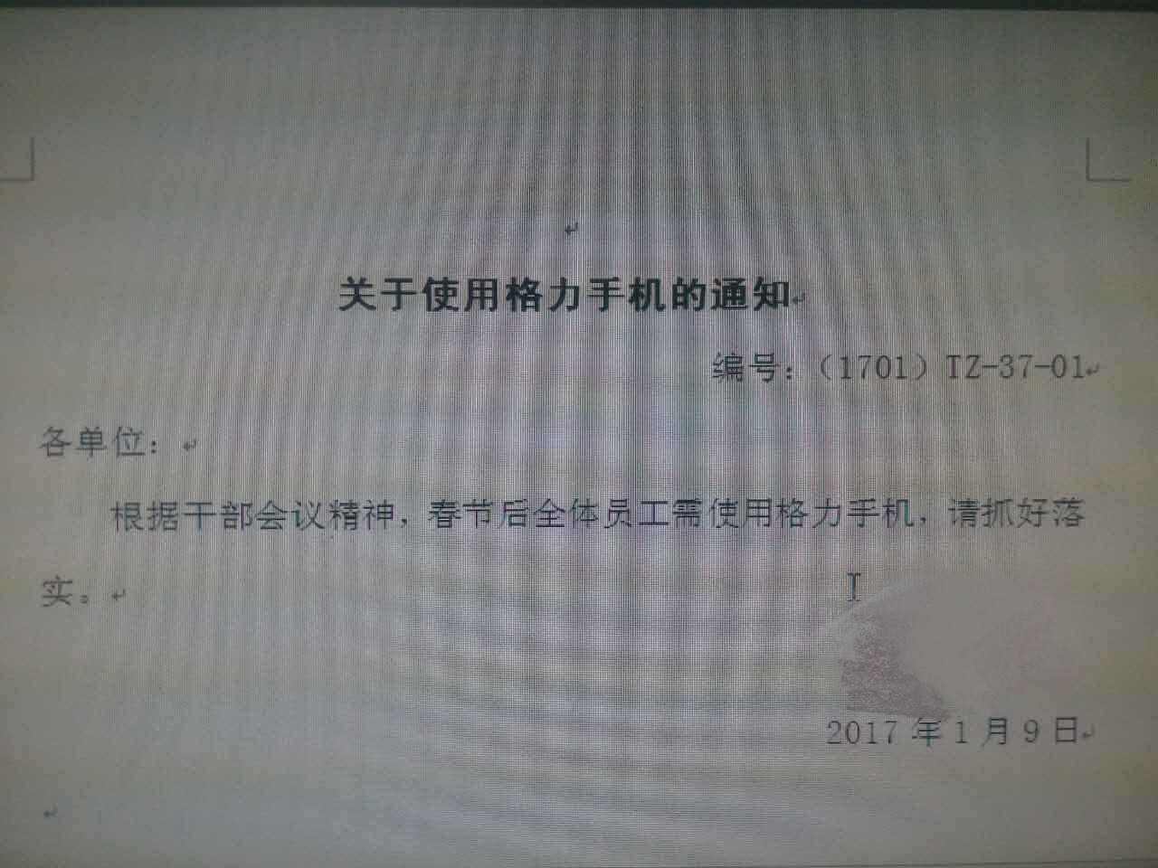 2017年1月8日,格力电器全员收到了一封《关于使用格力手机通知》的邮件。据该邮件显示,春节后格力全体员工需使用格力手机。