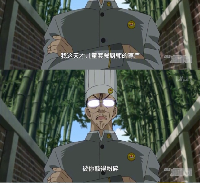 因为柯南不吃儿童套餐,主厨要把他杀了。
