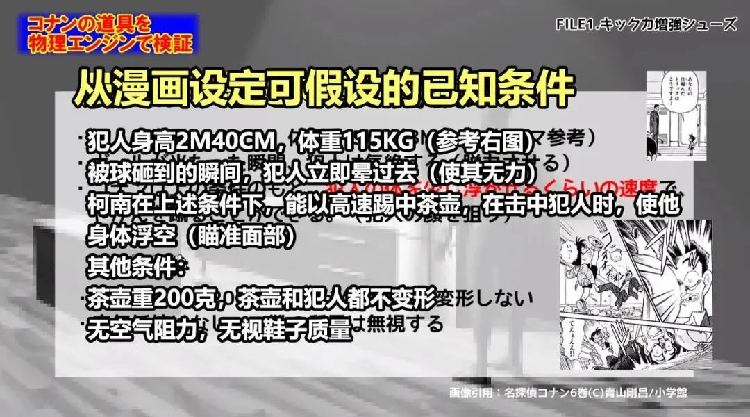 日本博主“物理エンジンくん”做了一个物理实验,以漫画中柯南用茶壶踢飞犯人的情节进行求证,最终得出结论: