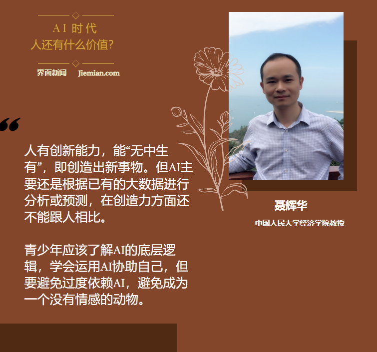 聂辉华:了解AI的底层逻辑,学会运用AI协助自己,但要避免过度依赖AI,避免成为一个没有情感的动物。