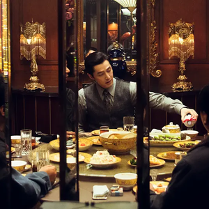 从《花样年华》《2046》到《繁花》,东方意境的怀旧感贯穿其间,张曼玉的旗袍、梁朝伟一直用钢笔写的小说、指尖的香烟,到《繁花》里变成了宝总细嚼慢咽的泡饭、派力司香灰色西裤。