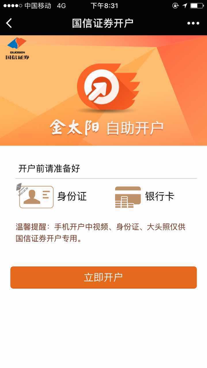 “国信证券开户”小程序只专注一个功能点:开户。服务包括:一、系统自动推荐距离用户最近的营业网点,可查看距离并导航;二、提供0等待、7*24小时开户服务;三、专业示范,引导开户。