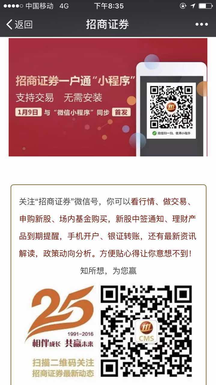 在目前上线的券商小程序中,“招商证券一户通”服务最齐全。除了提供行情、自选股、资讯等功能外,还能支持交易,包括买卖股票、交易查询。