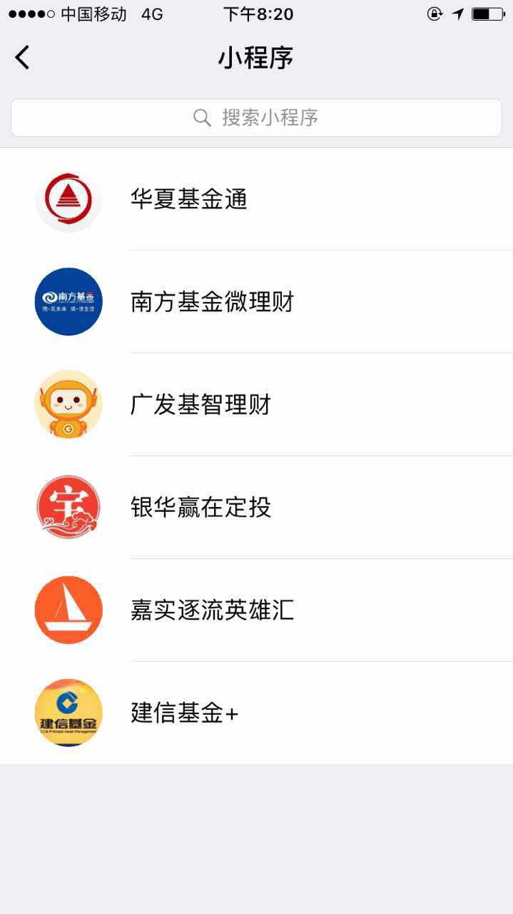 目前已经开发了微信小程序的基金公司有六家,包括:华夏基金通、南方基金微理财、广发基智理财、银华赢在定投、嘉实逐流英雄汇、建信基金+。