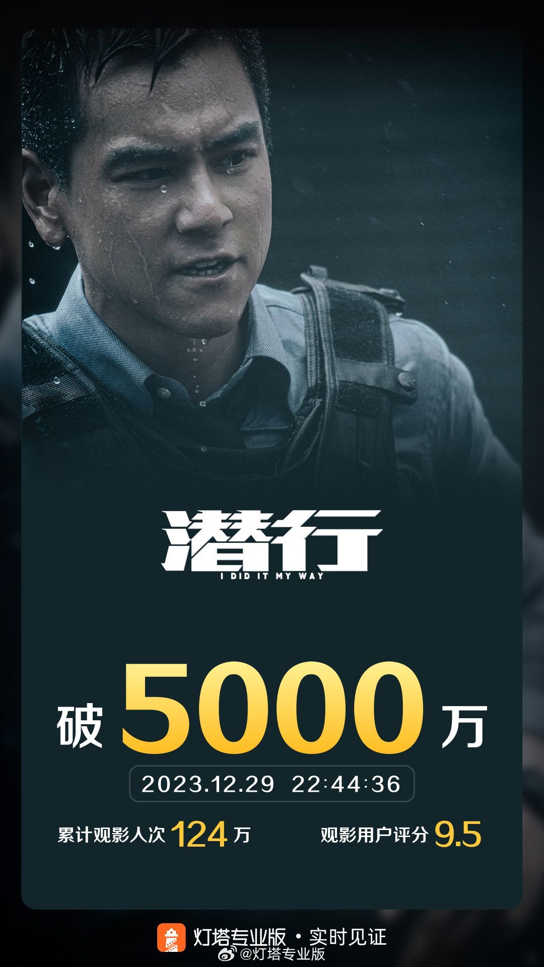 据灯塔专业版实时数据,截至12月29日22时44分,影片《潜行》票房突破5000万。