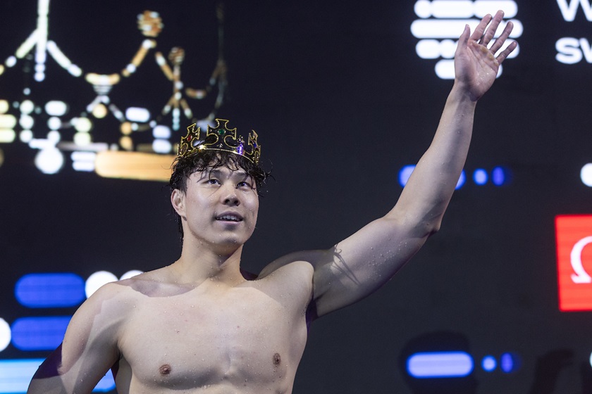 2023年,24岁的覃海洋在福冈世锦赛上,夺得男子蛙泳50米、100米、200米3枚金牌,并打破男子200米蛙泳世界纪录,成为历史上第一位在同届世锦赛上包揽蛙泳3个项目金牌的运动员。