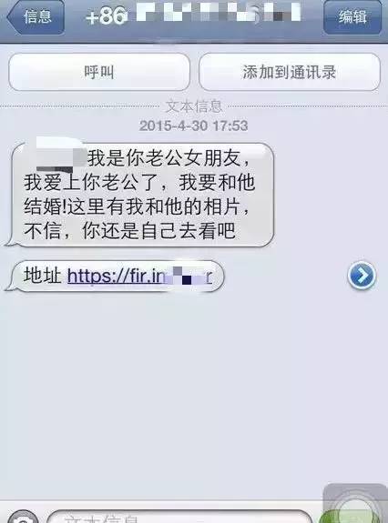 ×××,我是你老公女朋友,我爱上你老公了,我要和他结婚!这里有我和他的相片,不信,你还是自己去看吧。地址 https://×× ×.×××/×××。收到这样一条短信,你会不会点进去看个究竟?大部分女人看到后立马暴怒,这还能忍?!