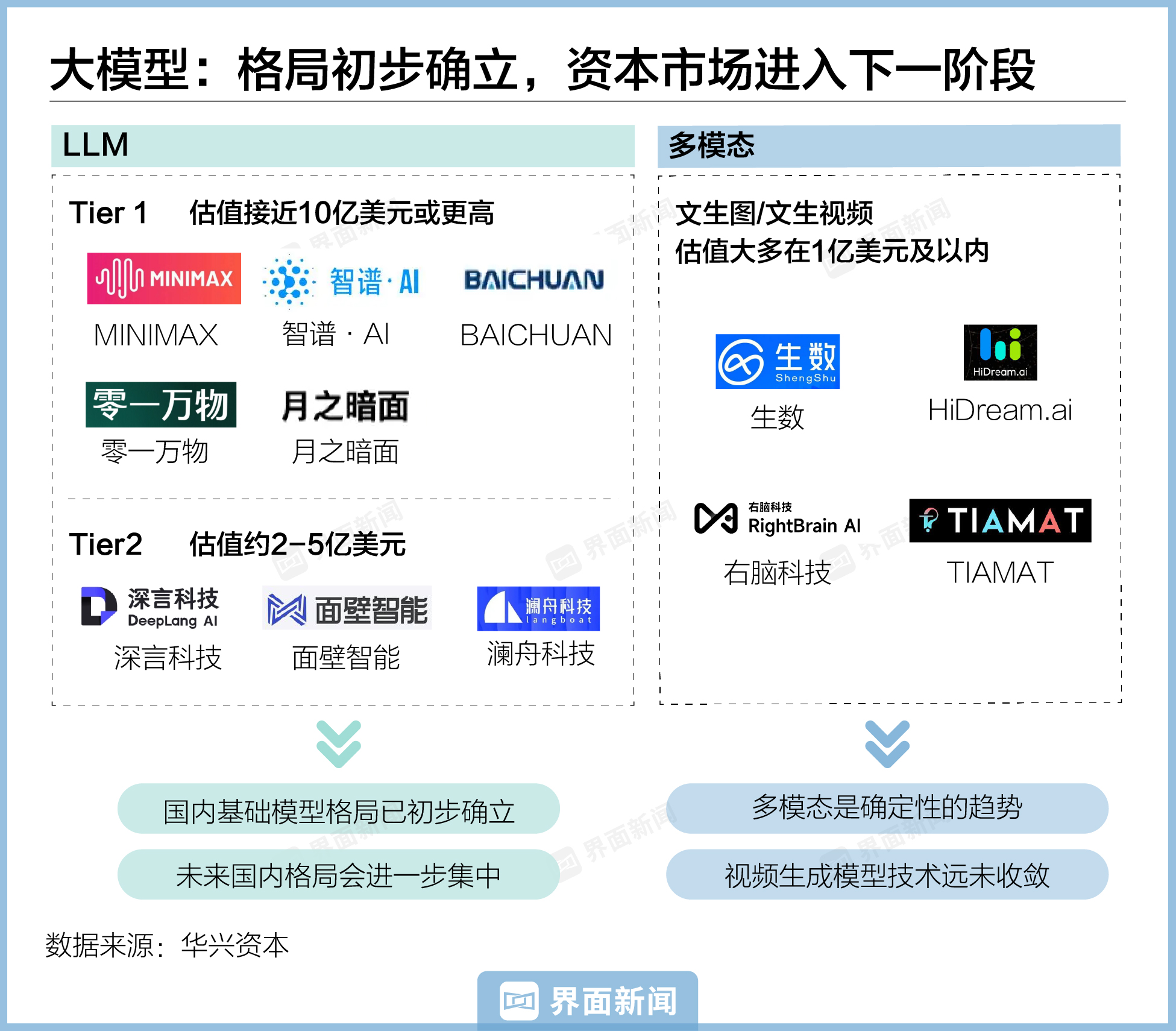 在这一年中,模型层的初创公司一方面在继续找钱,另一方面要快速证明自己的商业化能力。比如挑选几个市场规模相对较大的赛道,试图先让少数头部客户选择自己。