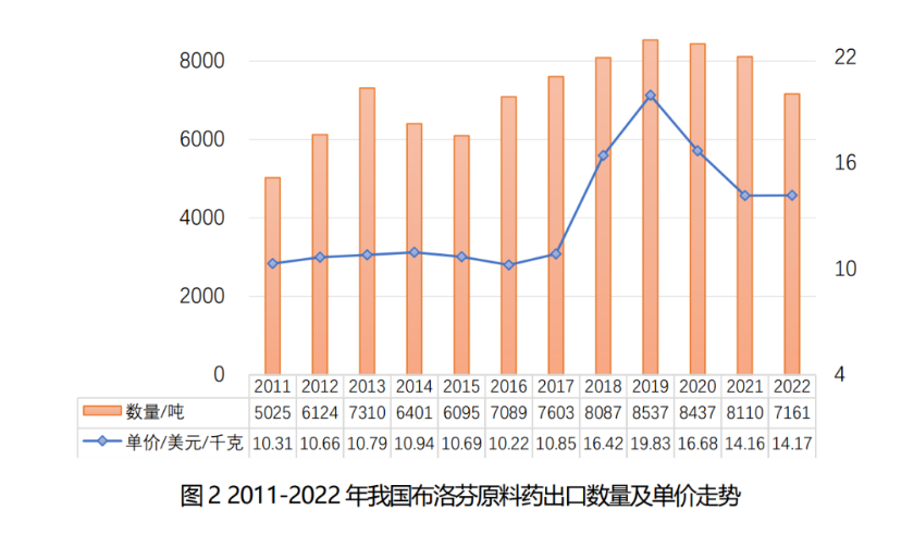 不过从价格上看,国内公司布洛芬原料药出口单价长时间徘徊于10美元/kg左右,即约7万元/吨。转折出现在2018年。当年6月,全球另一主要供应商德国巴斯夫因技术故障停产整改,市场上布洛芬原料药有效供给减少,因而拉升了价格。