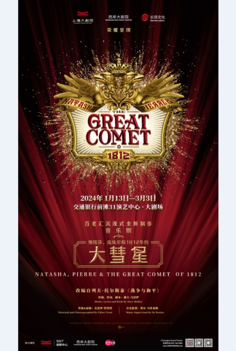 此次上演的《大彗星》为全新创制版本,主创团队在上海与纽约两地招募演员,其中既有活跃在百老汇一线的知名演员,也有大量中国演员进入主演和群演的卡司当中。