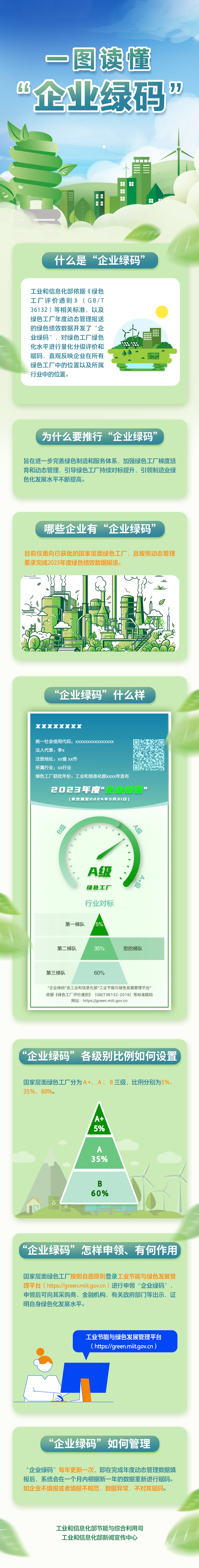 据工信部1月5日消息,工业和信息化部依据《绿色工厂评价通则》 ( GB/T36132) 等相关标准,以及绿色工厂年度动态管理报送的绿色绩效数据开发了“企业绿码”,对绿色工厂绿色化水平进行量化分级评价和赋码,直观反映企业在所有绿色工厂中的位置以及所属行业中的位置。目前仅面向已获批的国家层面绿色工厂,且按照动态管理要求完成2023年度绿色绩效数据报送。