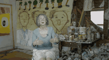 虽然你现在还是个自称“我只有8岁”的无耻宝宝,但你除了梅姨,仍然可以参考下这个来自英国的阿婆Rose Wylie的样子。
