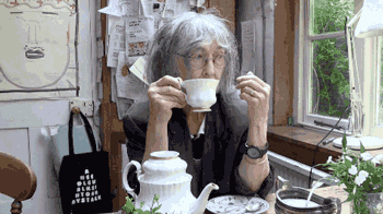 年轻的时候,阿婆在艺术学院进修过,出演过巧克力棒广告而为人所知。婚后为了家庭和三个孩子,阿婆一度放弃作画,投身于伟大的主妇事业中去。