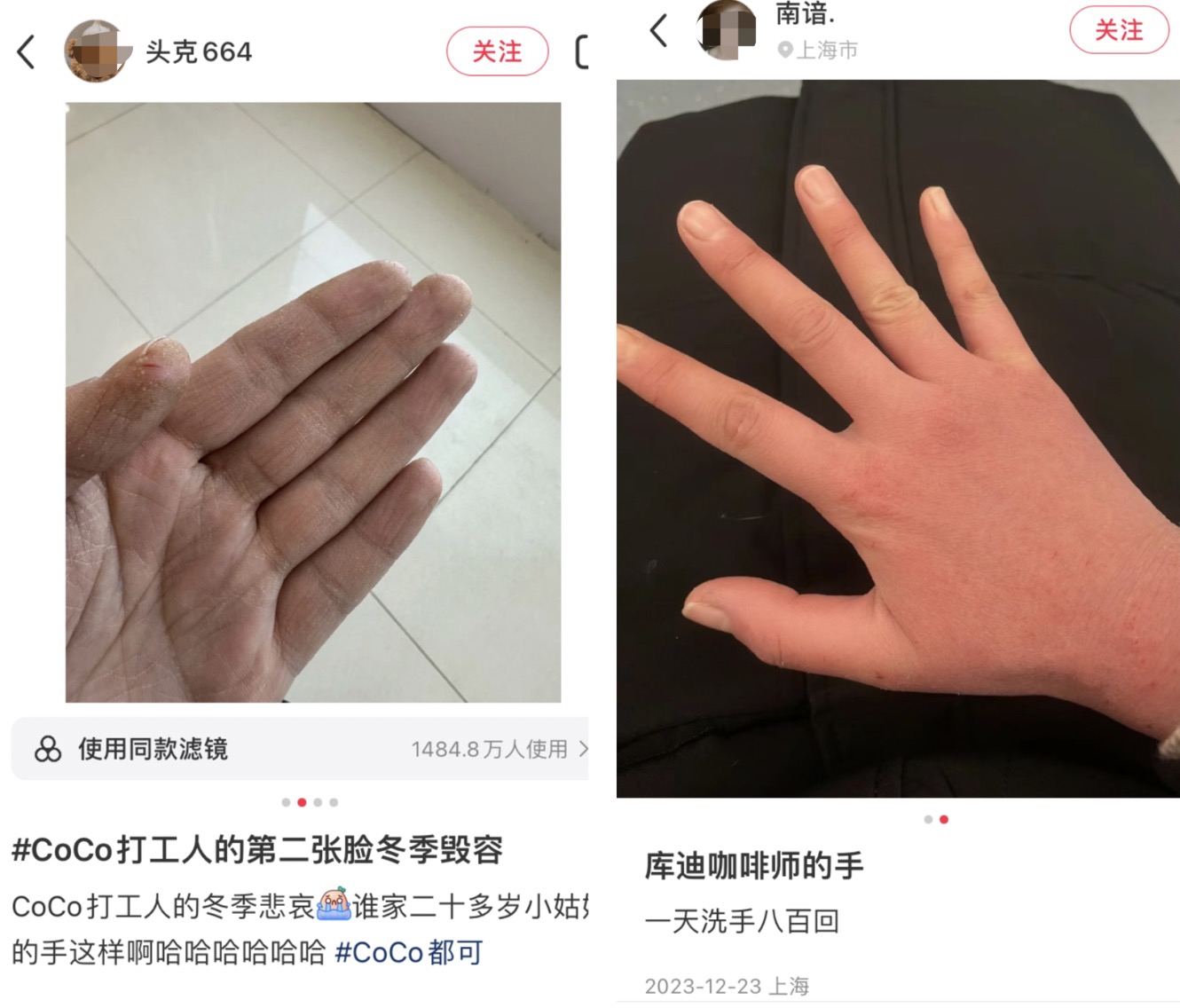 相比之下,瑞幸两小时洗一次手的频率远低于星巴克、麦当劳。而且,在社交平台上,库迪咖啡咖啡师、星巴克打工人洗手、coco工作烂手等类似话题同样存在。