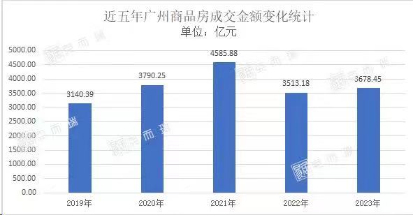 根据克而瑞1月5日晚间发布的数据统计,2023年广州一手住宅成交74486套,同比增长6%;全年商品房最终揽金规模为3678.45亿元,同比增长5%,成为近五年来的第三高,对比2019年多卖了约500亿元。