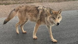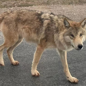 去年12月14日中午11点多,途经无极龙风宫,再过昆仑山口,可可西里网红狼出现了。看到狼,团里的两名游客激动得尖叫:“真的看到了网红狼!”