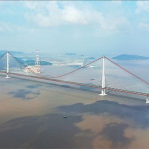 西堠门公铁两用大桥是甬舟铁路及甬舟高速公路复线跨越西堠门水道的共用跨海桥梁,连接舟山金塘岛和册子岛。