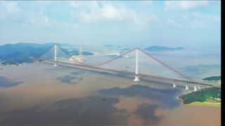 西堠门公铁两用大桥全长3118米,主跨采用1488米斜拉悬索协作体系,桥面宽68米,是在建的世界最大跨度公铁合建桥梁和世界最宽跨海大桥。大桥选取“公铁平层”布置,中间为铁路,两侧为公路。铁路为双线客运专线,设计时速250公里;公路为双向6车道高速公路,设计时速100公里。该大桥是甬舟铁路全线关键性控制工程,工程规模大,桥梁结构新颖,科技含量高,是一项挑战极限的超级跨海工程,大桥建成后将成为中国高速铁路跨海大桥的标志性工程。
