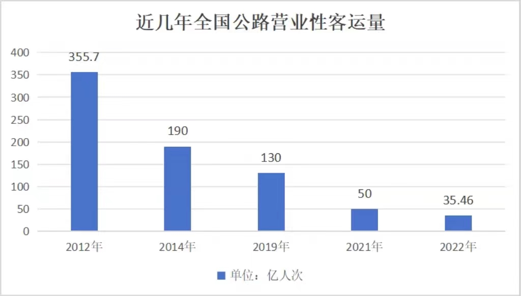 2012年,全国公路客运量达到顶峰355.7亿人次。然而,登上抛物线的顶点后,接踵而至的就是坠落。
