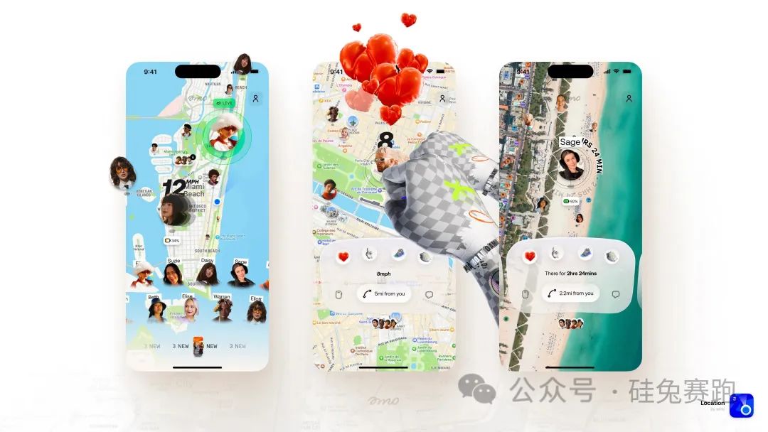 12月,Amo推出了第三款软件-Location,这一位置共享软件让人梦回Zenly时代,用户可以在地图上查看好友的位置,了解他们正在做什么,还可以发送信息和表情,私戳他们来约定见面,同时Location与地图应用结合,不但会显示好友间的距离,还可以计算步行和驾车所需时间,支持用户一键导航或打开叫车App,鼓励真人线下见面互动。用户可以为不同软件设置不同权限,比如与某些好友共享照片,只对亲密好友开放位置共享。