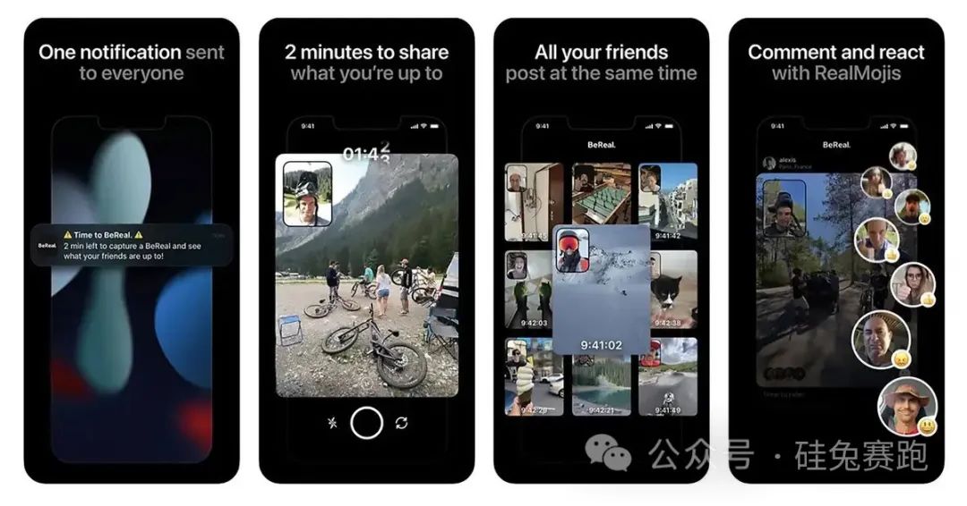 这几年新的社交软件层出不穷,能获得病毒式流量和爆发式增长的几款app都有着共同的主题,那就是主打“真实”。像是在去年几乎是无处不在、全网都在用的BeReal,用户每天在app推送的提示下进行一次发布,同时调用前后摄像头进行两张照片的拍摄来展示当下的心情和在做什么,推送提示时间可以是一天中的任意时刻,而用户只有两分钟时间进行发布,这一随机和即时性是为了鼓励用户发布最真实的照片,与精修和滤镜说再见,同时也能通过照片来更加关注好友的动态。这一初衷很快得到了年轻用户的支持,靠着校园内大使的口口相传,BeReal在2022年实现了爆发式增长,开年4个月的app下载数就接近了700万,月活用户数的增长达到了315%。BeReal至今融资总额超1亿美元,包括a16z、DST Global和Accel等多家机构都是背后投资者。