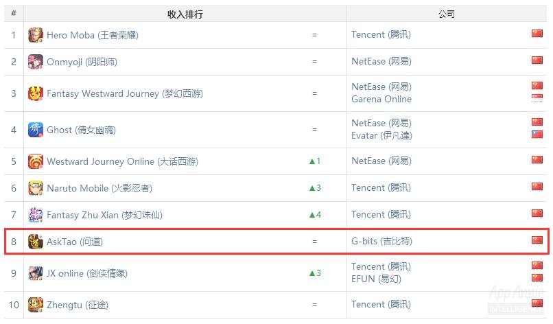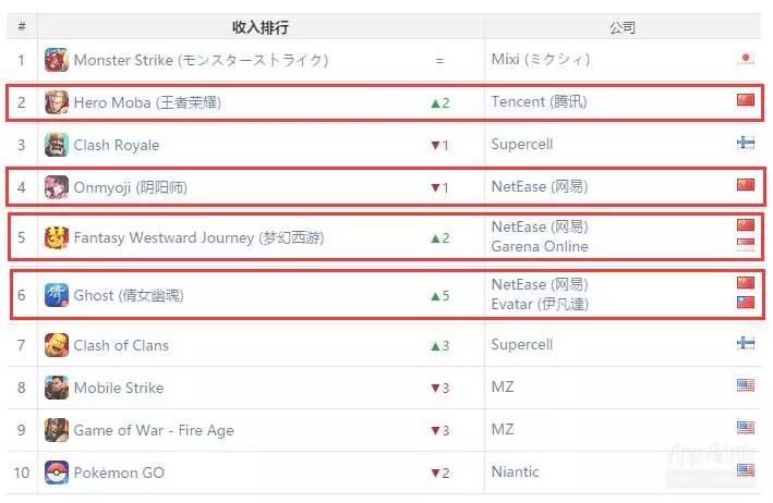 2.《王者荣耀》全球双平台收入稳定在TOP10,《倩女幽魂》全球iOS收入第六