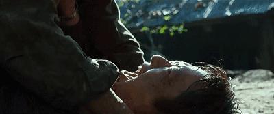 啊啊啊啊啊啊啊!看着真的好疼啊!女主角被鲨鱼咬了个大口子,忍痛用项链缝合伤口,还被咸咸的海水扑打,这么暴力的场面伤害了小十君的眼睛和心灵!