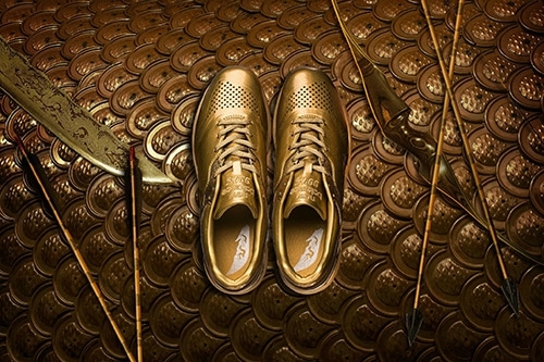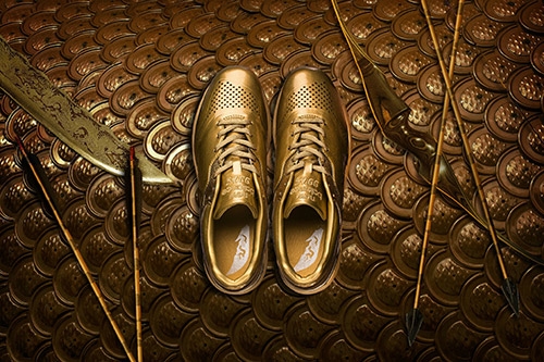 设计灵感:鞋款设计方面运用金色漆皮将997.5塑造成电影主色调的金色,呼应了电影中冷酷惨烈的悲情美感