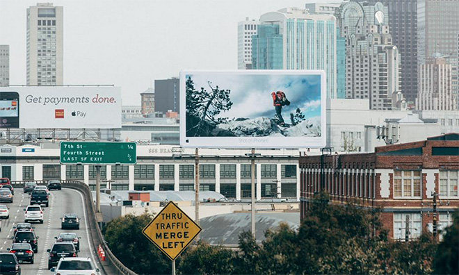 将产品与功能与某个领域形成紧密联系,是苹果常用的营销技巧。例如针对iPhone的摄影功能,它从2015年开始推出的一系列“由苹果手机拍摄(shot on iphone)的户外广告,成为经典案例之一。