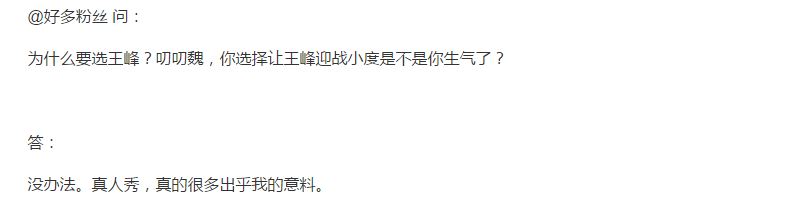 节目播出后,评委魏坤琳在网上回答网友质疑时说,“真人秀有时候令人意外。”