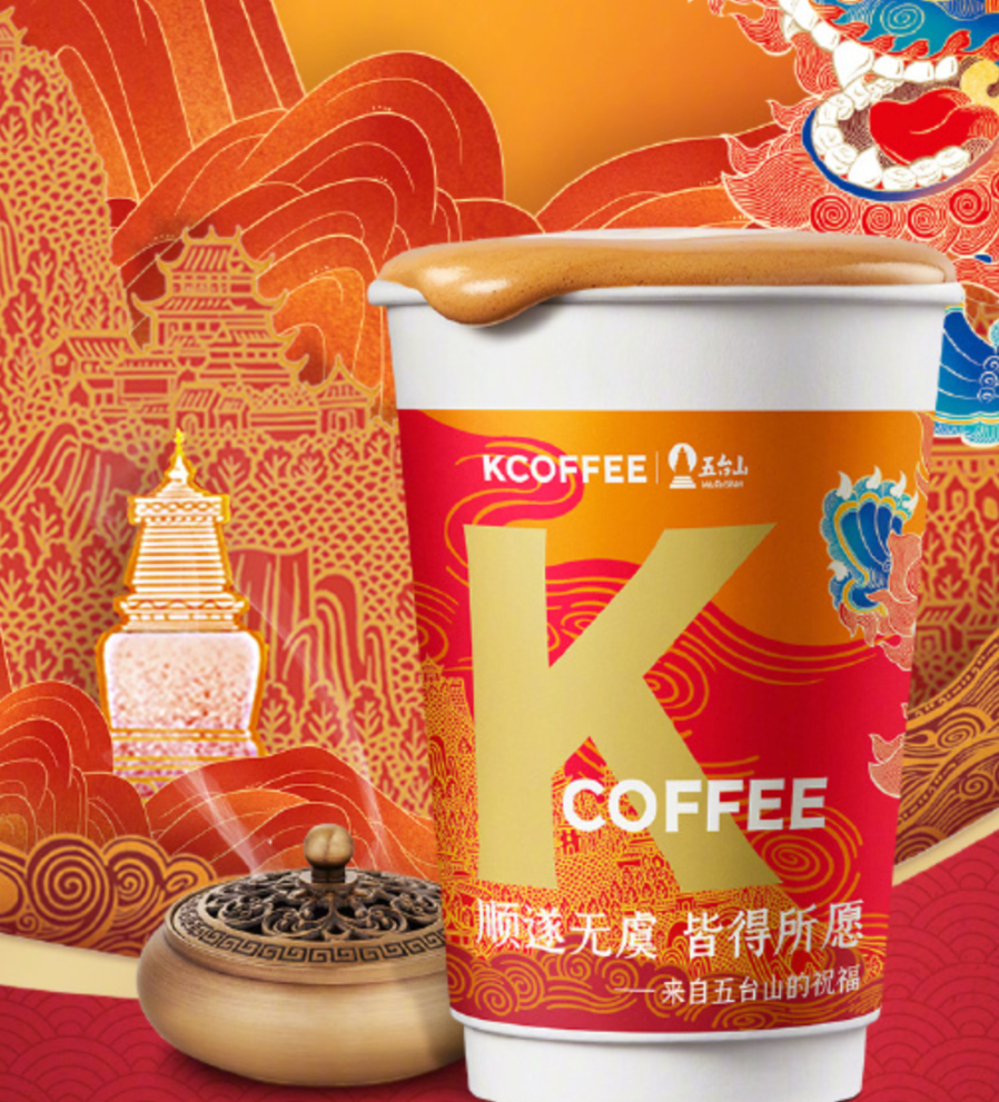 临近新年,肯德基与五台山推出的檀香厚乳拿铁则迎合了年轻人喜欢去寺庙祈福的风潮,同时还契合满足了消费者对咖啡品类的爱好。