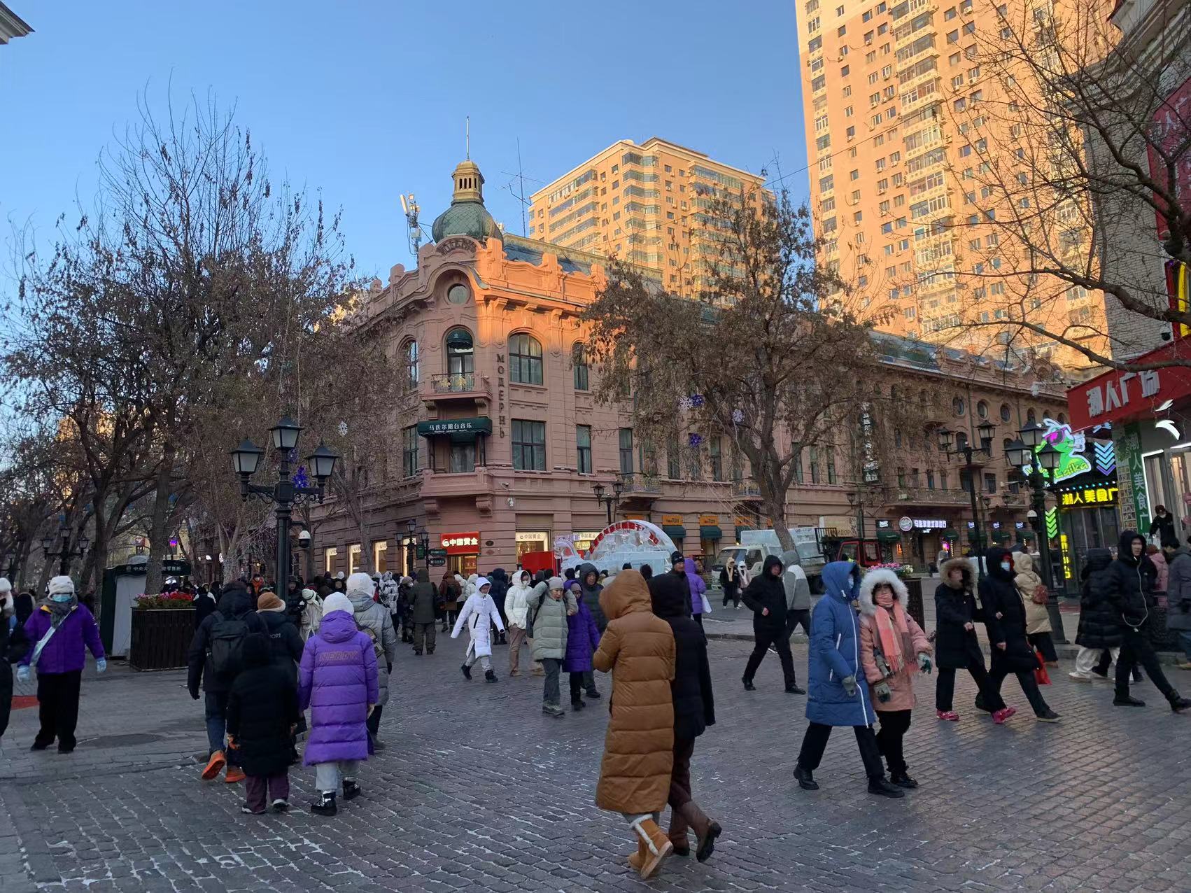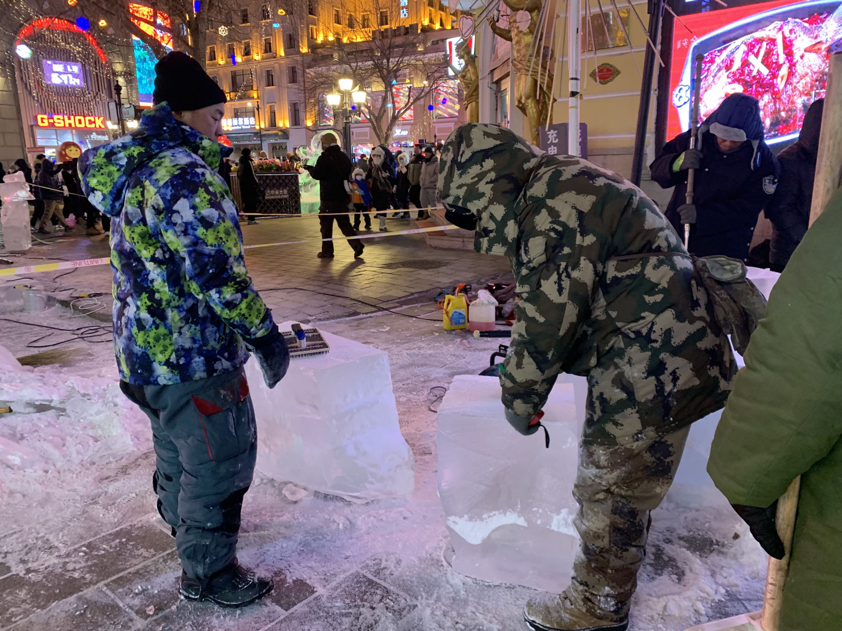 阔别哈尔滨32年的湖南人林芳也在这个时候加入了狂欢。她1991年毕业于哈尔滨工业大学,此后还没重返过这座城市。和印象中的哈尔滨区别不大,只是她记得,曾经走在街上,能听到“咯吱咯吱”的雪的响声。她说:“中央大街上的雪扫得太干净了。”
