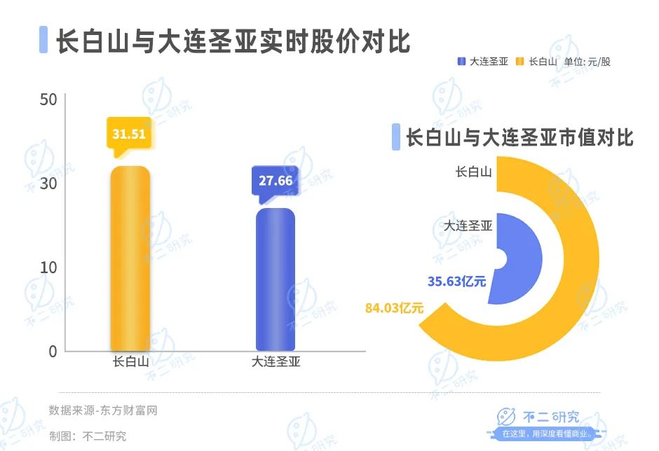 截止1月12日港股收盘,长白山报收31.51元/股,对应市值84.03亿元;大连圣亚报收27.66元/股,对应市值35.63亿元。