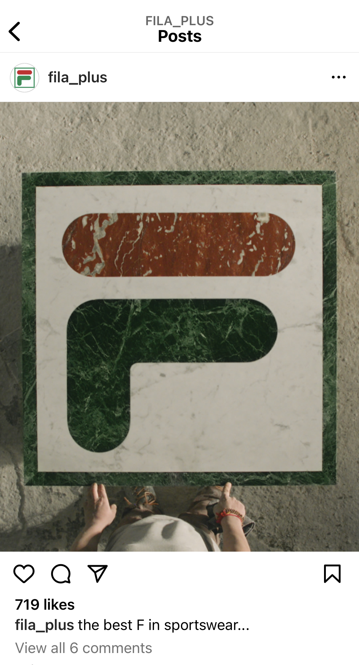 FILA+已经在国外社交媒体Instagram上开设了官方账号,并开始更新内容。该账号最新的一条内容是一张以FILA标志性品牌图标为核心的图片,配文为“运动服饰领域最好的F”。