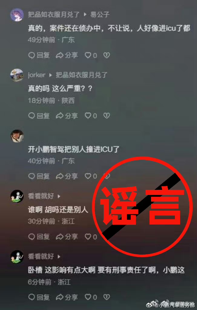 1月18日消息,@小鹏汽车法务部 日前发文称,近日网传所谓“小鹏智驾事故致人进ICU”,已经了解核实及当事车主说明,与小鹏智驾功能无关,请勿信谣传谣。