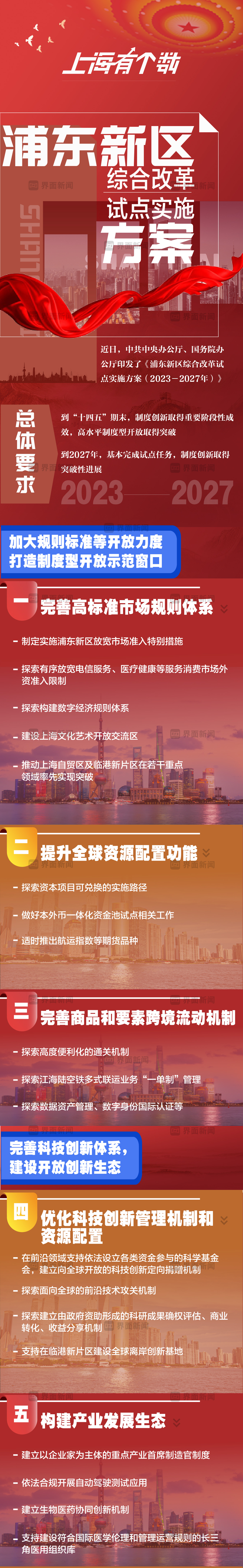 近日,中共中央办公厅、国务院办公厅印发了《浦东新区综合改革试点实施方案(2023-2027年)》。
