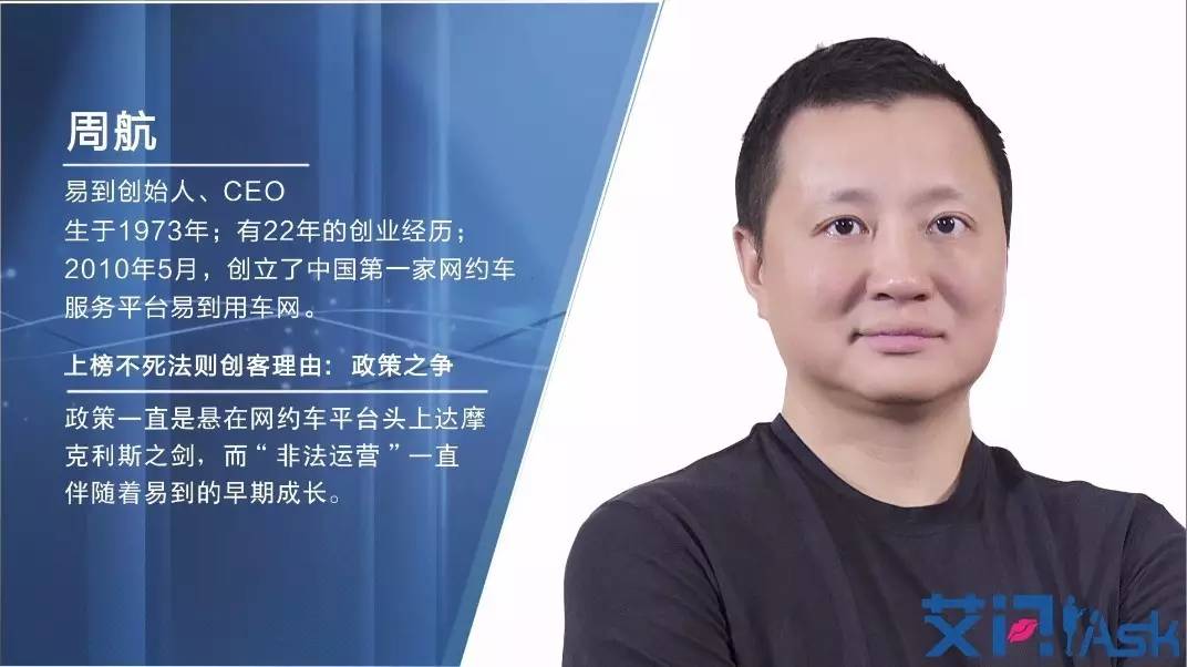艾问对谈易到用车创始人周航,得到了一个创业者在政策不确定的环境下,最完整的生存画像:易到如何开拓出行领域的共享经济,又是如何在补贴大战中坚守自己的定位,最后如何突围?周航对于易道从开拓者成为“行业老二”有哪些反思?他有什么样的理想和恐惧,在他眼中,创业者的价值是什么?和岛君一起来看艾问的深度分享。