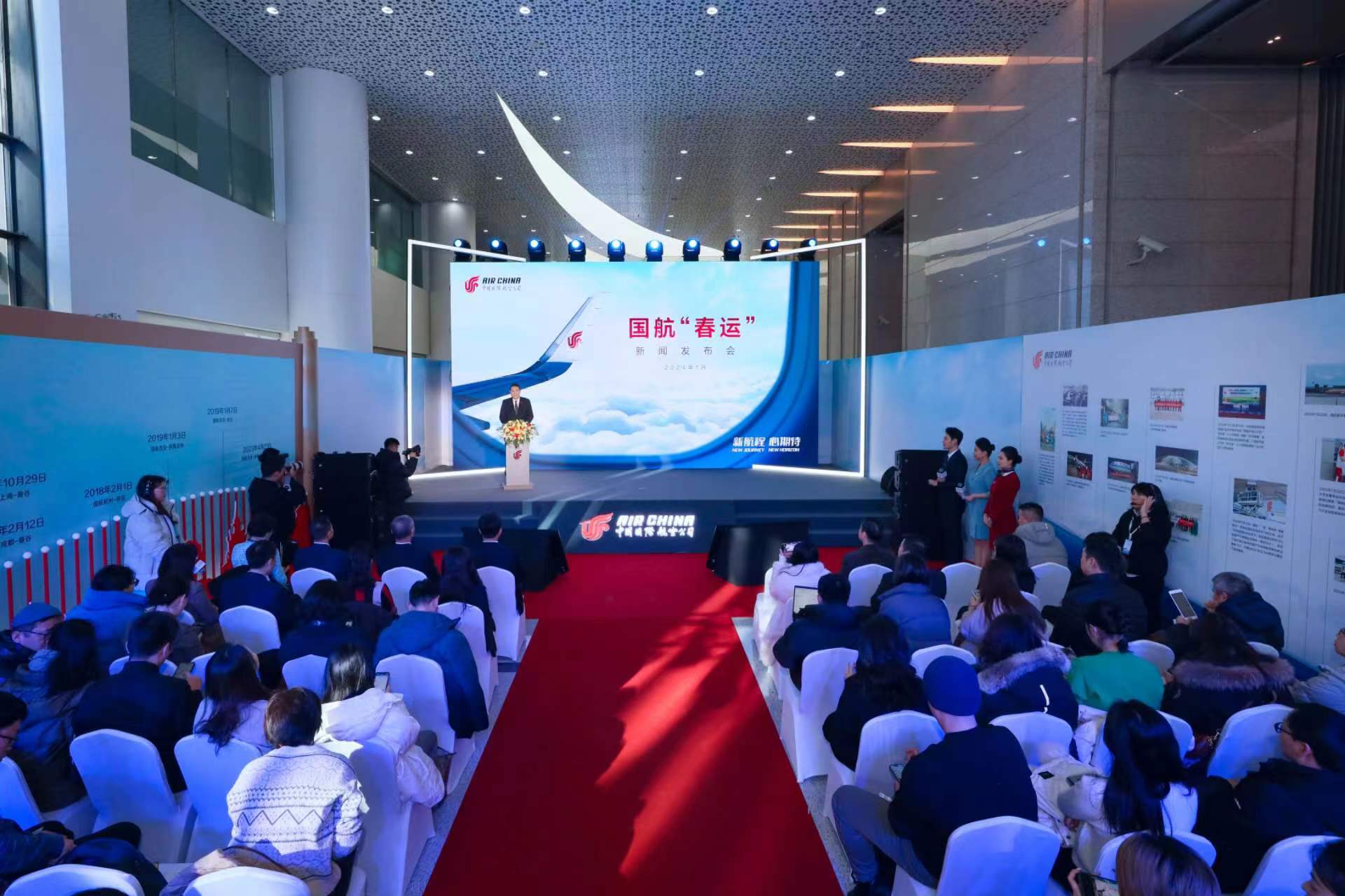 2024年春运自1月26日开始至3月5日结束,为满足需求,国航春运期间计划安排航班67691班次,日均1693班次,较2019年增长32%,较2023年增长40.6%。国际及地区市场,计划执行航线共111条,日均187班次。针对今年“探亲热+旅游热”春运出行模式,国航围绕热门航线加大运力投入,重点围绕探亲返乡航线增开航班,针对旅客关注度较高的港澳台及东南亚地区部分城市加大运力,北京-普吉、武汉-澳门等航线航班量同比2023年增幅650%。
