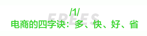 电商平台,尤其是移动购物的价值,可以用四个字来衡量:“多、快、好、省”。以京东为例:它最早做快、做好,今天开始尝试做多,慢慢开始做省。天猫、淘宝是从一开始做多、做省,到今天开始尝试去做快、做好。唯品会一开始做的是省,然后是好,现在正在往 “更快” 发展。