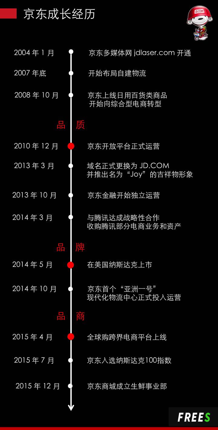 京东从 1999 年开始到现在,有三个重要节点:品质、品牌、品商。