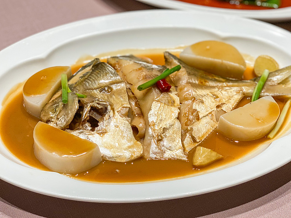 海外门店的菜品除了新荣记主打台州菜以外,试验菜单中也加入了与过往不同的融合菜式,运用了来自日本本土的食材。比如新菜色包括和牛月饼、雪蟹燕窝粥和鱼翅配超级大油条。而在中国的菜色黄金带鱼在这家店做成了黄金带鱼腩。