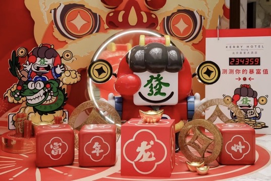 新春期间,北京嘉里大酒店携手潮流IP艺术家钱江盖饭老师「一手好牌」系列作品,联袂呈现“好运到嘉·龙年必发”主题新年美陈展装饰、一手好牌下午茶及龙年限定咖啡等产品。预订春节期间客房及年夜饭,将获赠「一手好牌」联名伴手礼。精彩纷呈的现场互动活动:“龙年有话说”心愿抽奖活动、“暴富指测试”社交媒体打卡活动等,尽显龙腾春意欢,风生水起,步步高升;沉浸式打卡龙年氛围感,与家人共享一顿阖家称心的龙腾福瑞之旅。