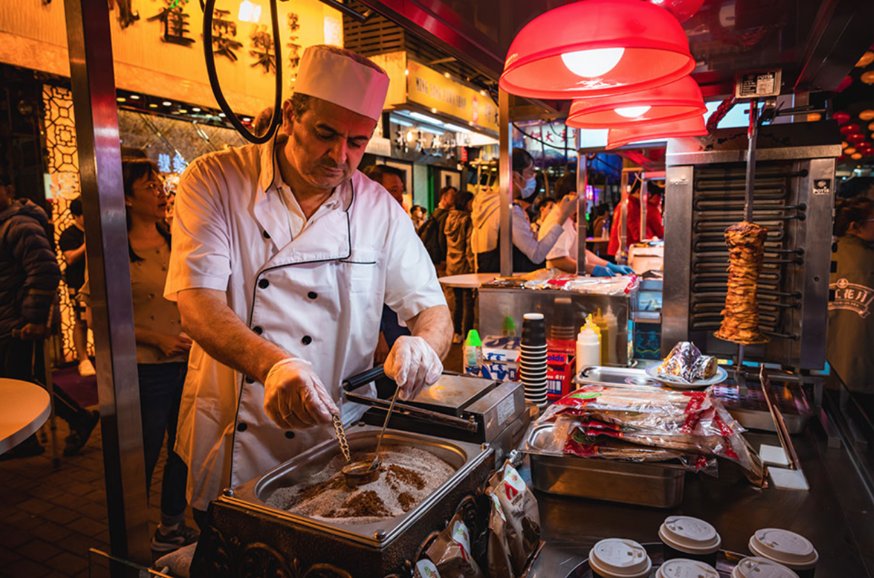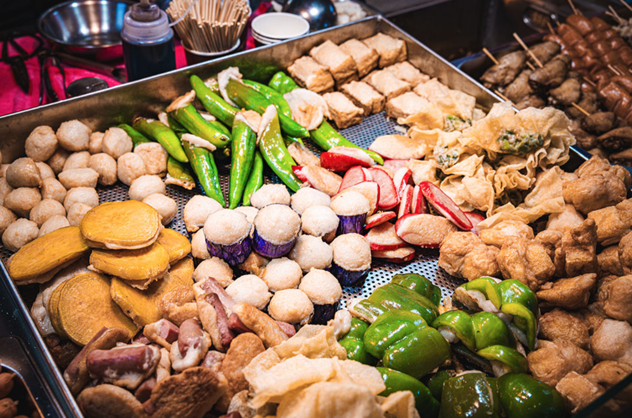 正逢“香港夜缤纷”活动,夜色中的庙街摇身一变成一个环球美食夜市,展现香港的多元文化。22档美食摊档,带来不同的味觉冲击,包括各种港式小吃,例如必吃的鱼蛋、烧卖及煎酿三宝、鱼肉碗仔翅、精致点心、蛇羹等,还有其他亚洲美食如胡椒饼、麻辣串、土耳其羊肉及巴基斯坦美食。