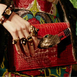 Lilith则是古代两河流域的苏美尔神话中一位法力高强的魔女,同时她也是亚当的第一任妻子,后出走伊甸园。既然以魔女命名,同样是神秘气质的Gucci珊瑚蛇自然是Lilith系列手袋少不了的设计元素,Lilith系列手袋出了小牛皮和水蛇皮外还有鳄鱼皮款。单色系小牛皮款有黑色,白色,木槿红可选,鳄鱼皮款以黑色及木槿红为主,水蛇皮款则以白色搭配黑色与木槿红组合而成。