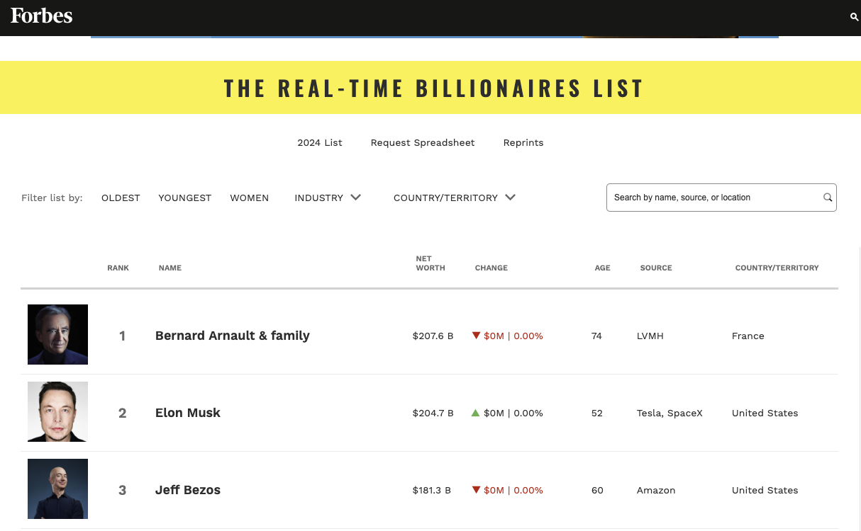 1月28日,根据福布斯实时富豪榜数据,法国奢侈品巨头LVMH集团董事长兼CEO伯纳德·阿尔诺再次超过特斯拉CEO埃隆·马斯克,成为全球首富。截至目前,阿尔诺净资产为2076亿美元,位列福布斯全球富豪榜榜首,马斯克以2047亿美元净资产紧随其后,杰夫·贝索斯则排名第三。