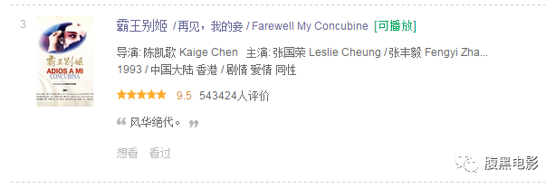 《霸王别姬》仍稳居豆瓣电影排行榜第三位!