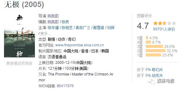 豆瓣上也仅仅给出了4.7分的成绩,好于5%奇幻片,好于5%动作片。
