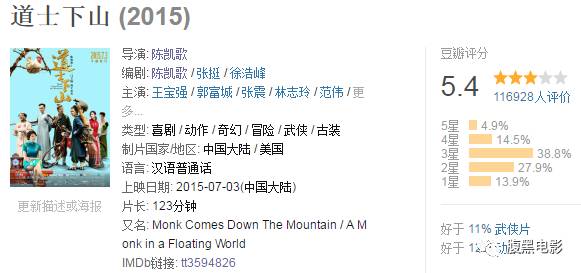 豆瓣评分5.4,好于11%武侠片,好于12%动作片。
