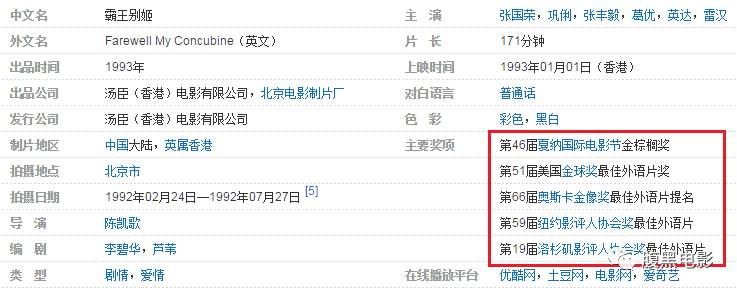 而且《霸王别姬》是首部获得法国戛纳国际电影节金棕榈大奖的中国影片,也是唯一一部同时获得戛纳国际电影节金棕榈大奖、美国金球奖最佳外语片的华语电影。