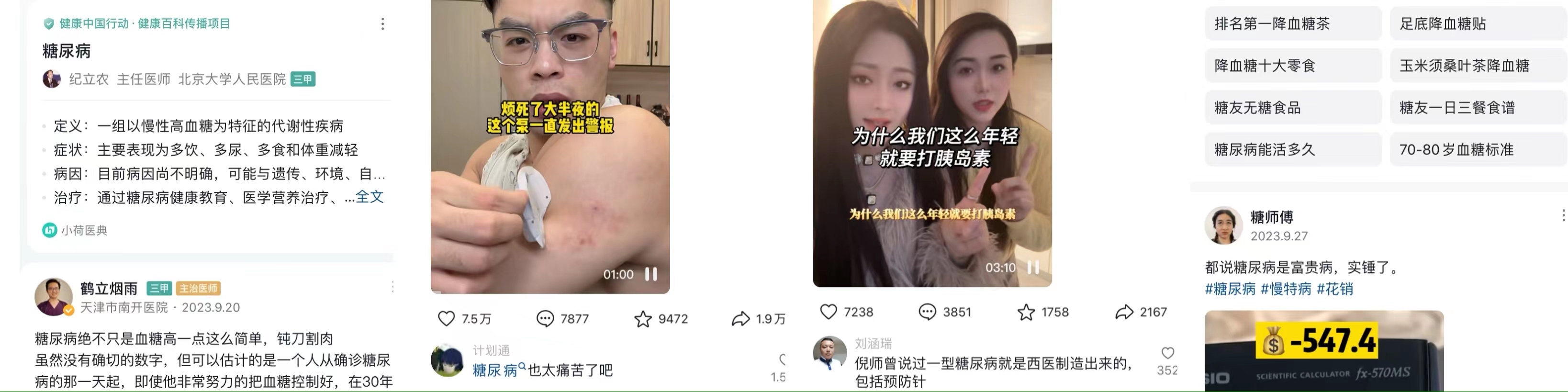 例如,若是再在抖音里搜索“糖尿病”,首条内容还是来自小荷医典。如在国内知名内分泌专家纪立农的名字之后,大量被标注为“三甲医院主治医生”都在用他们各自的话语解释糖尿病。与百科名医网这类医者穿着白大褂进行端庄讲述的风格相比,抖音之中的“三甲医院主治医生”所展示的内容也更活泼。